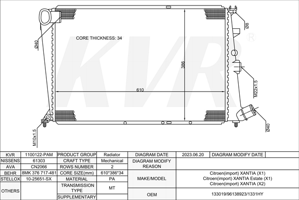 - APPLICATION:Citroen XANTIA (X1)'1993-98/XANTIA (X2)'1998-2003