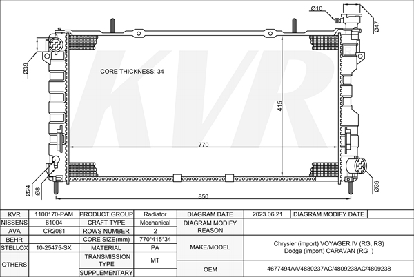 CHRYSLER MPV,1999-2008 EDZ RADIATOR
