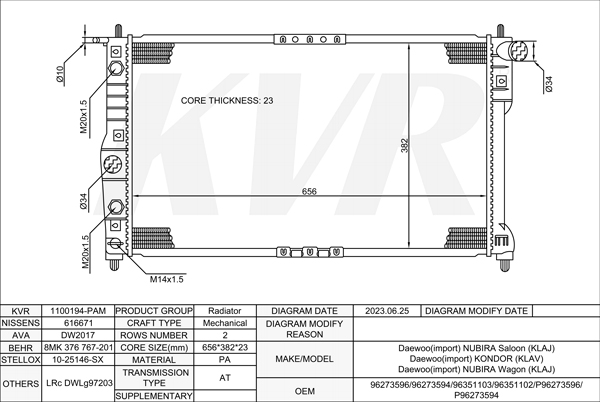 DAEWOO SALOON,1997- X 20 SED RADIATOR