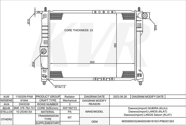 - APPLICATION:Daewoo NUBIRA'1997-/Daewoo LANOS'1997-