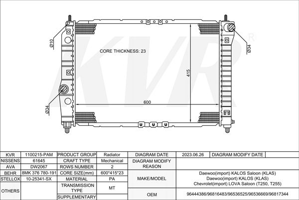DAEWOO HATCHBACK,2002- F14D3 RADIATOR