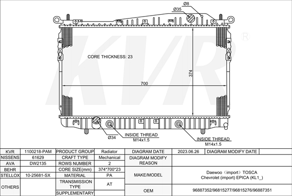 DAEWOO SALOON,2006- X 20 D1 RADIATOR