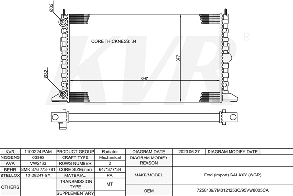FORD MPV,1995-2006 ZVSA RADIATOR