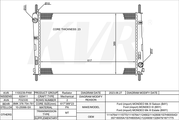- APPLICATION:Ford MONDEO Mk III Saloon'2000-07