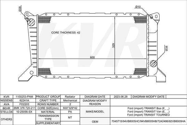 - APPLICATION:Ford TRANSIT Bus'1994-2000