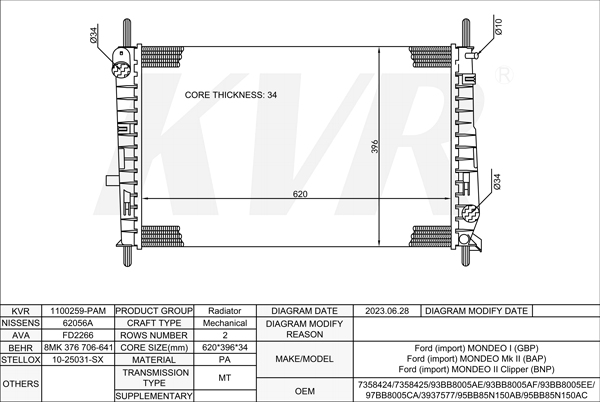 - APPLICATION:Ford MONDEO I'1993-96/Ford MONDEO Mk II'199 6-2000