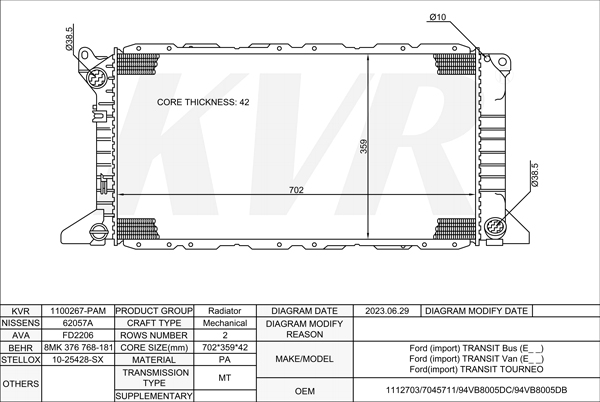 - APPLICATION:Ford TRANSIT Bus'1994-2000