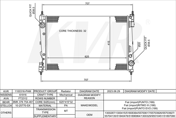 FIAT HATCHBACK,2005- 955 A3.000 RADIATOR