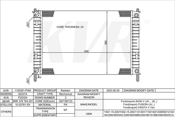 - APPLICATION:Ford IKON V'2001-10/Ford FUSION'2002-12