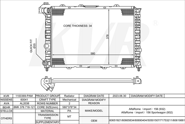 ALFA-ROMEO SALOON,1997-2005 AR 32301 RADIATOR