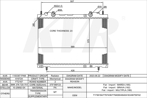 - APPLICATION:Fiat MAREA'1996-2007/Fiat BRAVA'1995-2003