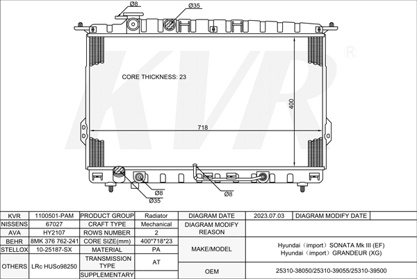 - Core size(mm) Mechanical:400*718*23