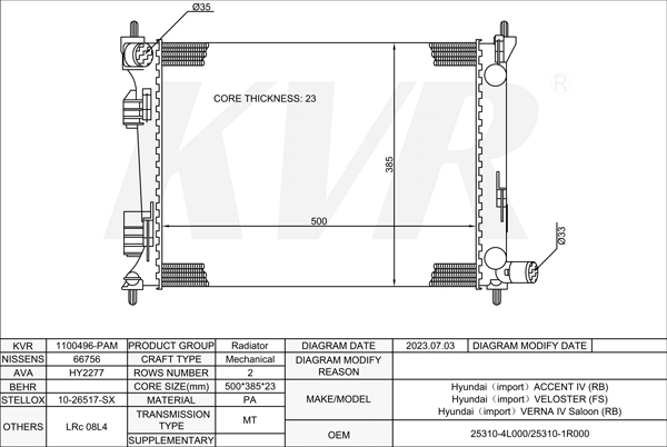 - APPLICATION:Hyundai ACCENT IV'2010-