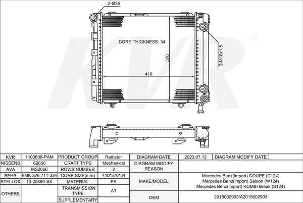 MERCEDES BENZ SALOON,1984-93 M 102.982 RADIATOR