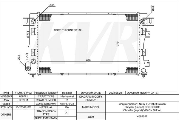 CHRYSLER SALOON,1992-98 F01 RADIATOR