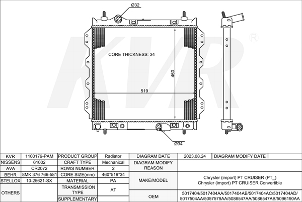 - APPLICATION:Chrysler PT CRUISER (PT_)'2000-10