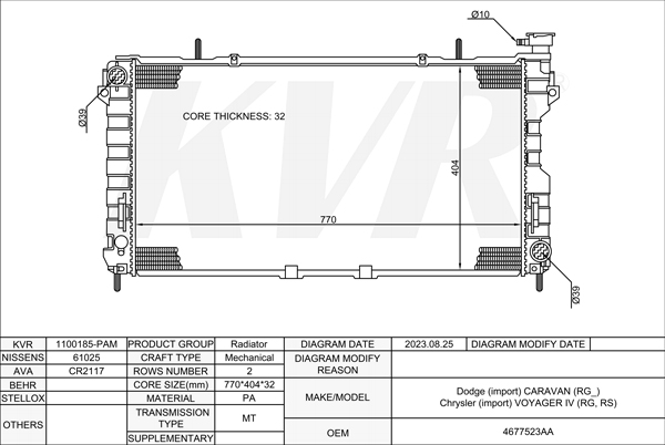CHRYSLER MPV,1999-2008 EGA RADIATOR
