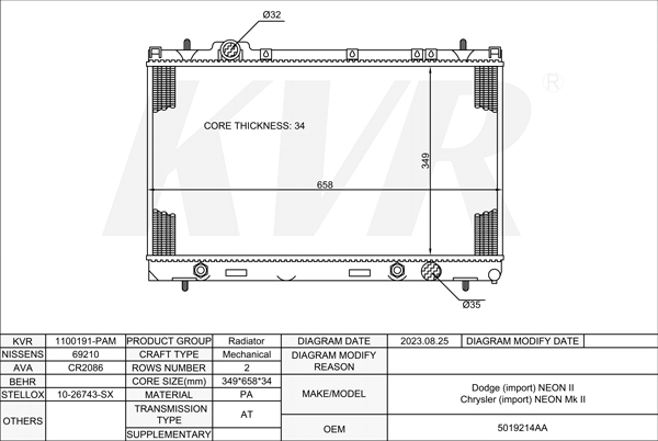 CHRYSLER SALOON,1999-2006 ECH RADIATOR