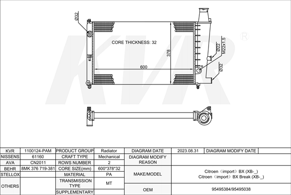 CITROEN HATCHBACK,1982-94 D2C (XU92C) RADIATOR