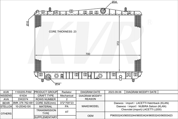 - OEM:P96553243/96553244/96553424/96553243/96553423
