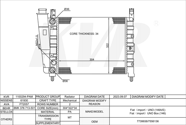 - APPLICATION:Fiat UNO (146A/E)'1983-2006