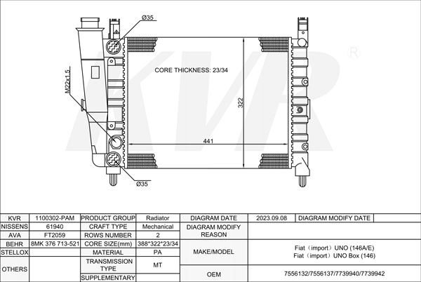 FIAT HATCHBACK,1983-2006 146 C3.000 RADIATOR
