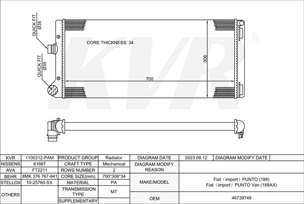 - APPLICATION:Fiat PUNTO(188)'1999-/Fiat PUNTOVan(188AX)'2000-09