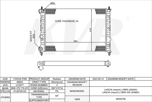 LANCIA SALOON,1999-2005 839 A6.000 RADIATOR