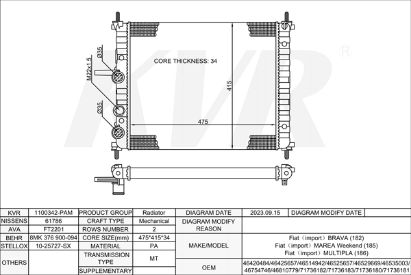 - APPLICATION:Fiat BRAVA(182)‘1995-03/Fiat MULTIPLA(186)’1999-10
