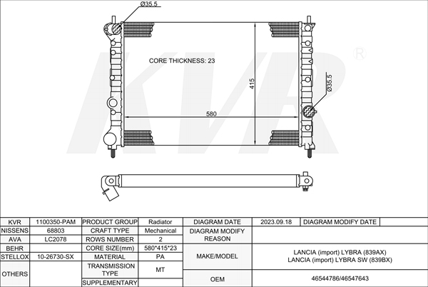 LANCIA SALOON,1999-2005 839 A6.000 RADIATOR