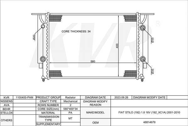 FIAT,2001-10 RADIATOR