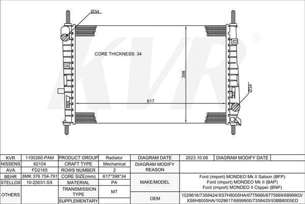 - APPLICATION:Ford MONDEO Mk II Saloon (BFP)'1996-2000