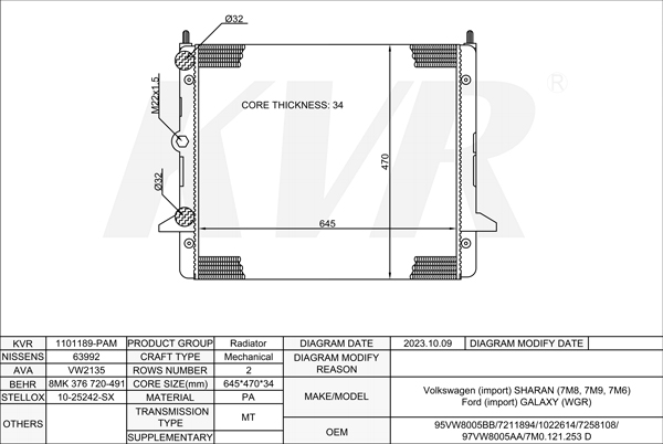 95VW8005BB/7211894/1022614/7258108/97VW8005AA