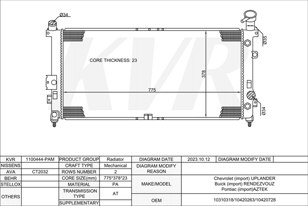 CHEVROLET MPV,2004-06 LX9 RADIATOR