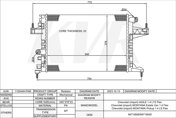 - APPLICATION:Chevrolet AGILE 1.4 LTZ Flex'2009-14