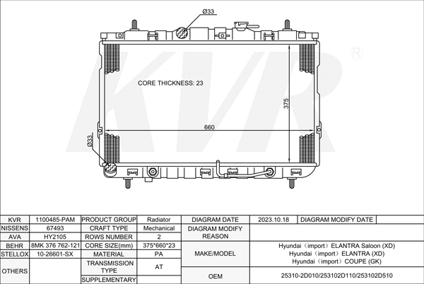 - APPLICATION:Hyundai ELANTRA Saloon (XD)/ELANTRA (XD)'2000-06