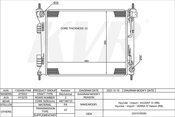 - APPLICATION:Hyundai VERNA IV Saloon (RB)'2010-