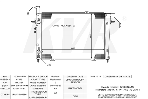 - OEM:25310-2E800/253102E801/253102E821/253102E820
