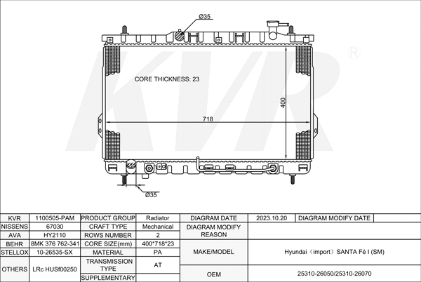 - Core size(mm) Mechanical:400*718*23