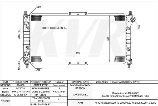 - OEM:KF12-15-200B/KL20-15-200E/KL20-15-200F/KL20-15-200