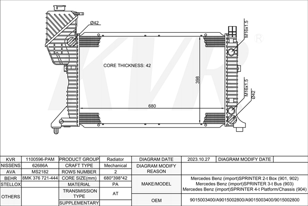 Mercedes Benz BOX,1995-2006 OM 602.980 RADIATOR