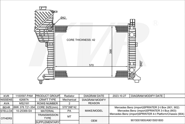 Mercedes Benz BOX,1995-2006 OM 601.943 RADIATOR