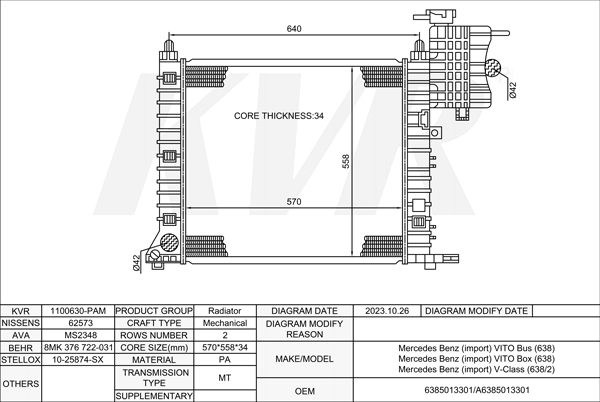- APPLICATION:Mercedes Benz VITO Bus (638)'1996-2003