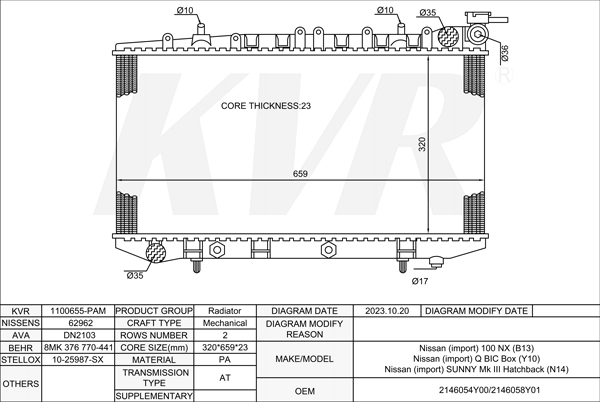 - APPLICATION:Nissan Q BIC Box (Y10)'1990-2000