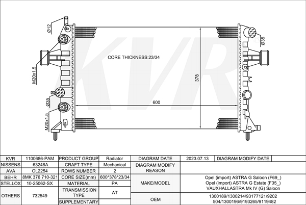 - APPLICATION:Opel ASTRA G Saloon (F69_)'1998-2009