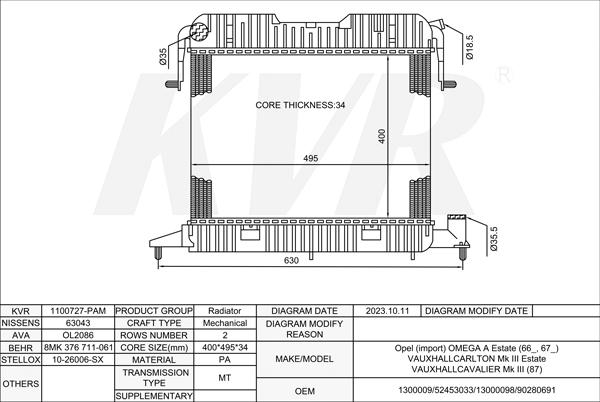 - APPLICATION:Opel OMEGA A Estate (66_, 67_)'1986-94