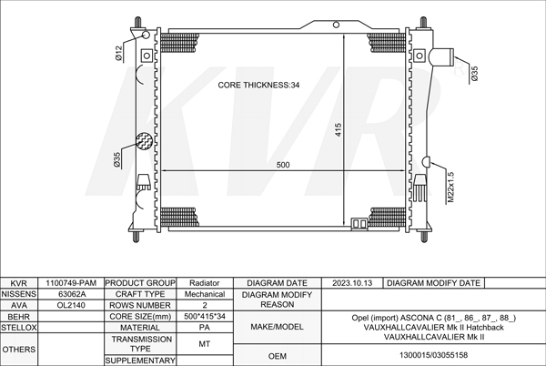 - OEM:1300015/03055158