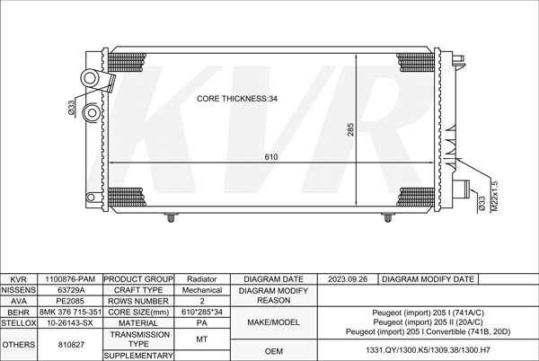 PEUGEOT HATCHBACK,1983-98 DFZ (XU9J1) RADIATOR