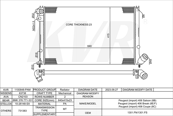 PEUGEOT SALOON,1995-2005 RFV (XU10J4R) RADIATOR