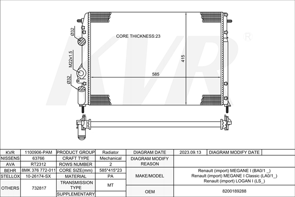 RENAULT SALOON,1996-2006 F9Q 744 RADIATOR